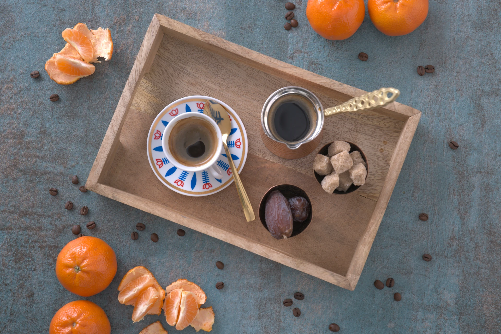 Na naszym stole znajdziecie również grillowane szaszłyki kafta, soczyste shish taouk marynowane w jogurcie i przyprawach Bliskiego Wschodu, kotlety jagnięce, czy konfitowaną nogę jagnięcą kharouf. Unikalny rytuał kawy i orientalne desery będą zwieńczeniem tej arabsko - śródziemnomorskiej podróży kulinarnej.